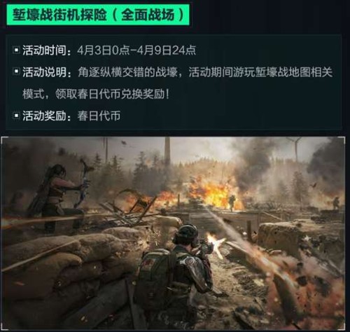 角逐纵横交错的战壕,活动期间游玩堑壕战地图相关模式,即可领取春日代币兑换奖励。