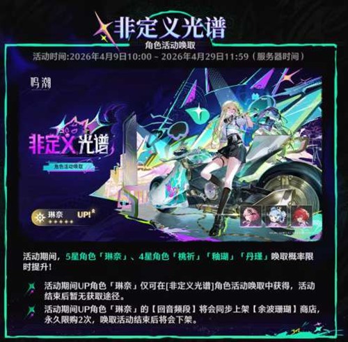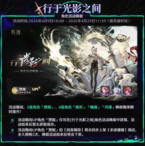 4月9日10:00至4月29日11:59,以下角色唤取活动将限时开启: