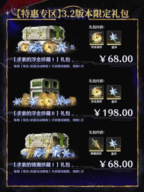 【求索的浮金珍藏Ⅱ】:198元,包含浮金波纹及900星声。