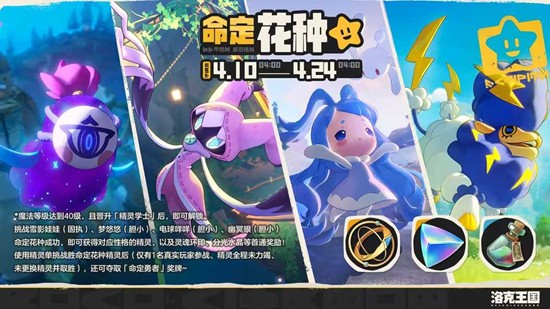同期开放的种植活动,同样围绕雪影娃娃等四只精灵展开,通过培育命定花种,解锁与精灵们的特别互动及道具奖励。