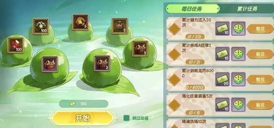 春日辛勤是一个任务驱动型的奖励活动。玩家需要完成指定的日常或周常目标,完成后可以领取踏青骰子和活动奖券。获得的奖券可以在专属的抽奖系统中使用,奖池内包含全材料自选包、强化石、潜能原石和金币包等高价值资源。