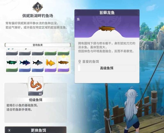 苔藓龙鱼是七大龙鱼中入手门槛较低的一种,它只出现在佩妮斯湖畔钓鱼场。这片区域视野开阔,但周围有魔物游荡,前往时最好结伴或准备好驱散道具。这种鱼喜欢藏身在水草茂密的地方,水面会出现细微的涟漪,这是它存在的信号。你需要使用“静音钓竿”或者提升角色的“观察力”属性,才能更容易地发现并钓起它。前往佩妮斯湖畔,可以直接使用已解锁的传送锚点,也可以从主城出发,沿着东边的林间小路步行穿越三段森林地形,途中注意避开巡逻的树精守卫。