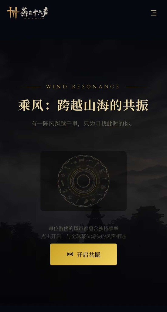 风声为信,回响作引。点击"开启共鸣"后,你将与世界另一端某位游侠"相遇",让声波跨越山海,完成一场素未谋面的江湖邂逅。