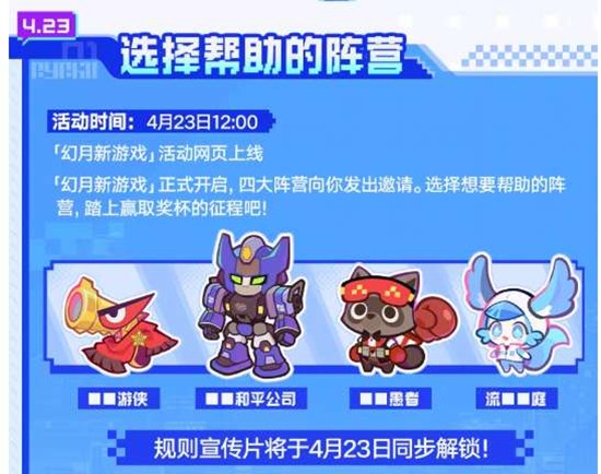4月23日12:00,「幻月新游戏」活动网页正式上线!四大阵营向全体开拓者发出邀请: