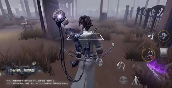 向指定方向投掷高速旋转的牙科钻头,命中求生者造成普攻伤害,命中场景物则短暂停留形成噪音干扰区,暴露附近求生者位置。