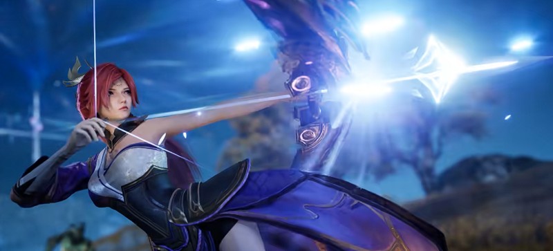伽罗是一位远程射手,需要通过赛季战令获取。她在战斗中可以在短弓与长弓两种形态间切换,能力也随之改变。触发完美闪避或使用二技能后,她的普通攻击会被强化为“渡灵箭”,暴击时还能追加“追魔箭”效果,这使得她的远程持续消耗能力非常出色。