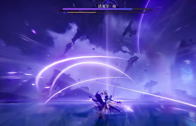 需要明确的是,达芙涅·暗是一个任务限定Boss,并不需要将她击杀至零血。当她的生命值降低到大约50%时,游戏会强制触发主角切换的机制。此时,操控新登场的角色对Boss发动连续的光芒攻击,可以使她陷入无法移动的硬直状态。这为释放终结性的大招创造了绝对安全的时机,能够实现一击必杀,完成归环副本的挑战。