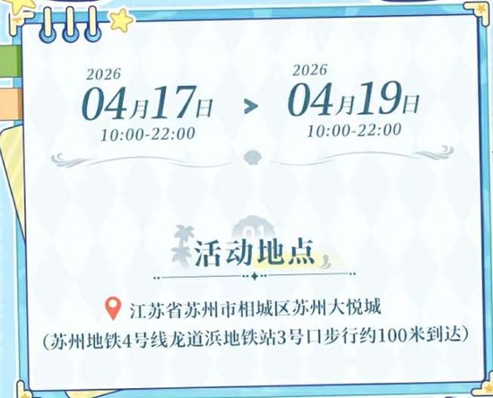 活动地点:江苏省苏州市相城区苏州大悦城·快意广场