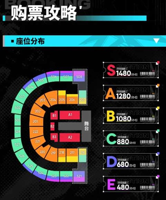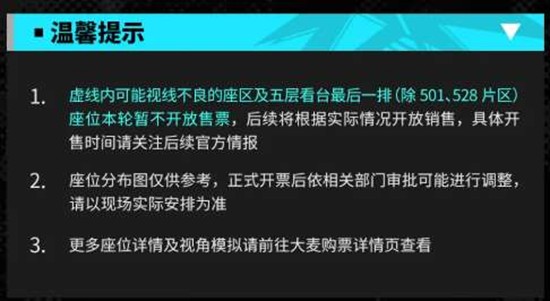虚线内可能视线不良的座区本轮暂不开放售票,后续将根据实际情况开放,请关注官方后续情报。
