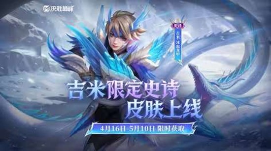 4月16日起,游戏内将开启「吉米·冰霜龙甲」专属活动,玩家通过完成活动任务即可免费领取这款史诗皮肤。