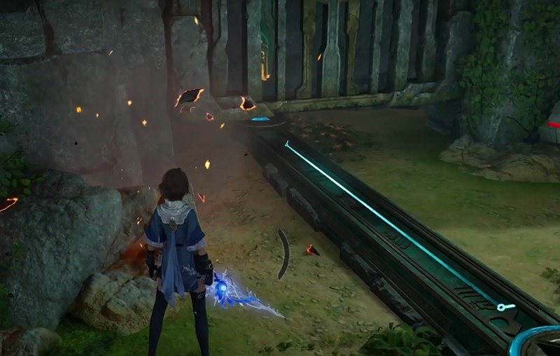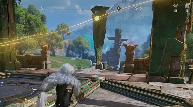 遗石残像机关的核心玩法,是推动场景中漂浮的石柱,让每根石柱发出的激光都准确照射到中央的宝箱上。当所有石柱归位,宝箱便会开启。这个过程类似于推箱子游戏,需要玩家规划好石柱的移动路径,因为石柱之间会互相阻挡,一步走错就可能卡住,需要重新开始。