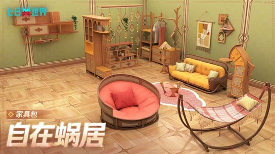 4月16日,【虚光叠幻】武器皮肤礼盒、【自在蜗居】家具包、【追光弄潮】时装同步登陆《七日世界》商城。