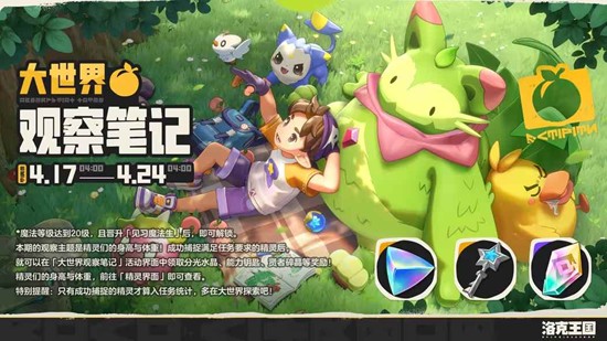 本期的观察主题是精灵们的身高与体重!活动鼓励各位小洛克深入大世界各个角落,寻找并捕捉符合条件的精灵。
