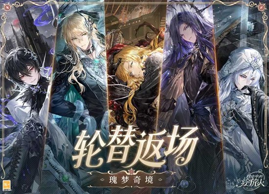 瑰梦奇境上、下篇轮替返场同步开放。活动期间,艾因SSR万籁绝响、路辰SSR深幕呢喃、罗夏SSR直至诸海、司岚SSR渡越辉空、叶瑄SSR星陨绮梦五张限定SSR画灵限时返场,获取概率提升。
