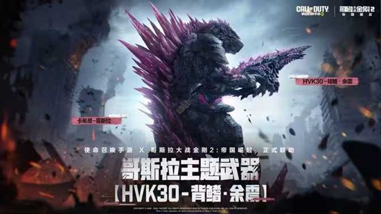 《使命召唤手游》与电影《哥斯拉大战金刚2:帝国崛起》的联动活动将于4月24日00:00正式上线。哥斯拉与金刚联动传说级武器及角色将降临战场,战士们可化身"哥总"与"金刚"粉碎敌人,体验怪兽级的视觉与战斗乐趣。此外,参与联动主题活动"巨兽冲击",还可免费获得雪魔史诗武器及角色。