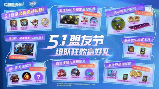 五一盟友节组队狂欢即将开启,各位召唤师可提前规划,把握福利窗口。