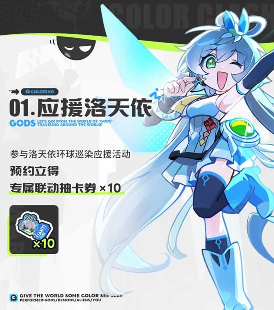 本次公测与虚拟歌手洛天依的联动福利诚意拉满。玩家通过洛天依联动签到即可免费获取联动角色洛天依×2、专属限定旅图×1以及专属联动抽卡券×30。此外,参与洛天依环球巡染应援活动,预约立得专属联动抽卡券×10,邀请好友应援还可再获额外抽卡券。联动神明洛天依零门槛入手,情怀与战力双丰收。