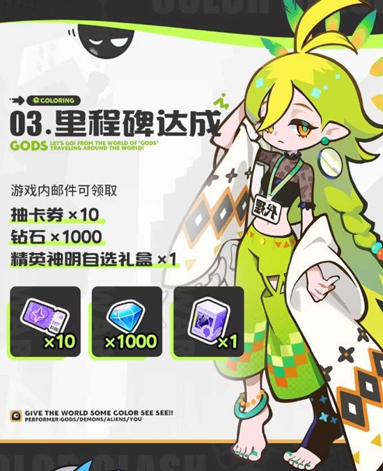 除抽卡福利外,游戏内还设置了多重签到与里程碑奖励,综合邮件奖励、签到活动、联动应援、里程碑成就及各类限时活动,《乱涂!彩世界》在启程版本阶段即可通过点击轻松获得126抽,首周活跃上限可达400抽,而首月累计最高可免费获取1000+抽。