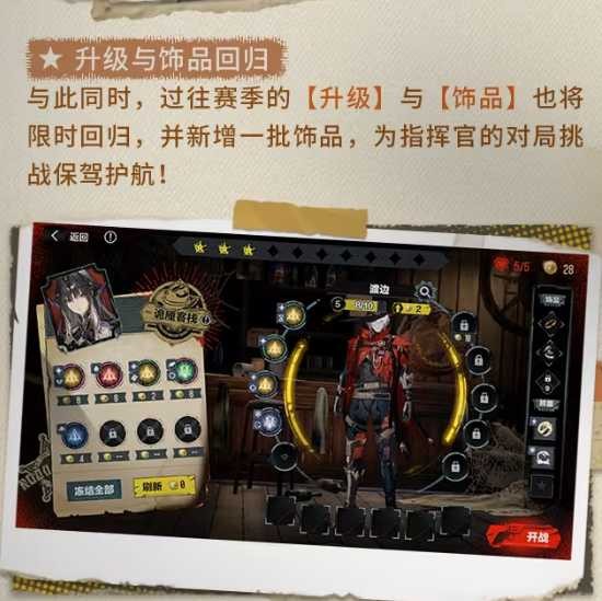过往赛季的【升级】与【饰品】将限时回归,并新增一批饰品,为指挥官的对局挑战保驾护航。老玩家可重拾熟悉build,新玩家也能体验更多元的策略搭配。