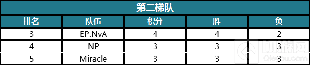 今年职业联赛夏季赛的总冠军EP.NvA开赛以来状态似乎不是很好,先后负于天王与MOK.HD战队,暂时以4胜2负的战绩屈居第二梯队之中。NP战队继续保持了他们夏季赛的活力,在积分榜中牢牢占据第四名。而Miracle战队作为从巡回赛晋升而来的战队,已经将宿敌LA.触手TV甩在了后面,进步神速的他们已经成为了晋级季后赛名额的有力争夺者。