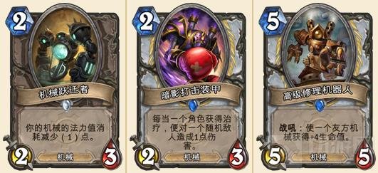 这套卡组不同于机械法的地方在于,它没那么容易耗尽手牌,你可以使用北郡来抽牌,也可以通过博物馆馆长和A3机械金刚来发现卡牌。另一方面,他不像机械法拥有双火球甚至安东尼刷火球等等的直伤斩杀,所以相比之下更注重场面,不用太在意抢脸,同时也带了一张暗影子嗣用来提供斩杀,这张牌5/4的身材前期丢上去也可以给对手场面压力。