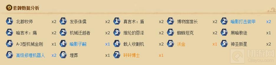 博物馆馆长:可以用齿轮大师来替换,齿轮大师前期很强,但是没办法补充手牌,而牧师前期抢脸并不能为你赢得比赛提供太大帮助,因为牧师的斩杀,你懂的。