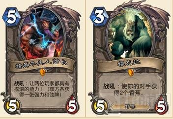 这两个随从主要是为了让对手拥有更多的额外手牌。虽然他们并不能够让对手更快的进入疲劳期,但是却能够让对手的手牌迅速增加到上限,完成爆牌的 目的。虽 说这两个随从对于我们并不是特别的关键,但是总有一定的机会让对手失去一些非常重要的卡牌。穆克拉能够让你在节奏上获得一些优势,而另一方面精英牛头人酋 长却有一定的随机性,不过老实说吧,我觉得这张卡牌能够起到一些娱乐性的目的。