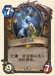 德鲁伊的新职业橙卡是一个 相当中庸的随从。它的属性并不出彩而且亡语效果也不够稳定,但是在这套爆牌德卡组当中,它却能够起到非常关键的作用让你永远也不会进入疲劳期,这个效果非 常的有用!因为我们的这套卡组有非常强的抽牌能力,而且像我之前提到的,使用这套卡组游戏时间相对会长一些。所以我们常常会抽光所有的卡牌,而爆牌德如果 输在了疲劳期感觉上可能会有些奇怪。总之,疲劳阶段是你获胜的关键!关于玛洛恩还有一个问题,就是要么他可以帮助你完成有利的随从交换,要么他会躺在卡堆 当中防止你受到疲劳的伤害,总之他能够帮助你获胜胜利。