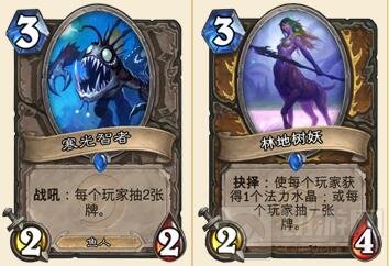 这两个随从能够强迫对手抽牌。虽然在常规 的卡组当中他们的效果可能不是特别的理想,但是在这套爆牌德卡组当中,这是我们胜利的关键。要记住,我们的目的是让对手抽到多余的卡牌,快速进入疲劳期。 对于我们来说这是轻而易举的事情。此外,这两个随从都可以配合年轻的酒仙再次发挥作用。你可以在他们回到你的手牌之后再次触发其战吼效果。不过你要小心, 自己不要抽到过多的卡牌。