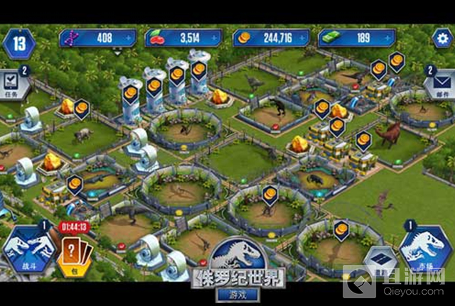《侏罗纪世界》在游戏类型上并没有采用目前国内较为主流的 RPG、卡牌的手游类型。而是另辟蹊径结合了模拟养成建造+恐龙真实对战的双 S 级玩法(S 级战略+S 级战斗)。玩家将在游戏中作为侏罗纪公园的园长,打造一个属于自己的超现实恐龙公园。玩家在游戏中培养的恐龙不仅能被游客参观借此收获金币,还能通过玩家的辛勤培育提高战斗属性,在竞技场与其他恐龙一决雌雄。《侏罗纪世界》富于战略性的战斗玩法和超拟真的恐龙战斗体验是游戏最让人震撼的地方。延续了欧美游戏公司一项的精良品质,游戏中的每只恐龙的建模都堪称完美,同比例模拟了恐龙的真实生态及行为动作。细心的玩家江湖发现,每只恐龙的叫声都经过了高频次的拟声、创造、还原,让每类恐龙都拥有自己独特的“嗓音”。如此细致入微的游戏体验,让每名玩家都能在游戏中收获最大的视听享受。