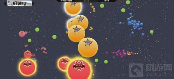 FT遇到了FLY,开始追逐FLY,,FT分身之后遇到了SPR,SPR分身之后被FT压住,双方互不相让,但是WT从左边过来了。最后FT补球吃掉了SPR.WT吃掉FLY之后开始追逐CMD。