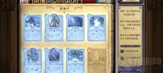 点击一张我们要制作的卡牌红色表示制作需要的魔法粉,右面表示分解可得到的魔法粉。点击制作按钮即可制作卡牌