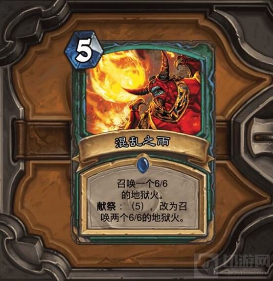 “混乱之雨”的衍生物作者的话:5费召唤一个6/6,放在经典包里的确有点厉害,而10费能召唤两个6/6,更是直逼死亡之翼的总身材。当然,放在目前的环境里,由于比较慢,似乎又有一点鸡肋。