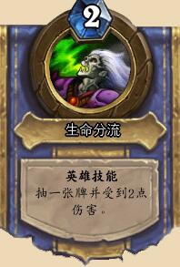 在推荐卡组之前小编先来简单的介绍一下术士的英雄技能,术士英雄技能生命分流的效果为“抽一张牌并受到2点伤害”。可能许多新手无法理解这个技能的效果,以2点生命为代价抽一张牌,这不是逗比吗?其实不然,术士的这个独特英雄能力使他拥有着所有职业中最高的抽牌效率,可以帮助自己建立手牌优势。在优势局中只要血量处于安全水平,用2点血换一张牌,来扩大场面优势,这完全可以是接受的。而在劣势局中,也可以使用英雄技能碰碰运气。