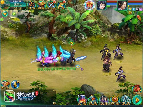 江湖自古多风雨,虽说江湖中杀人饮血乃平常之事,然亦有不少为非作歹之人枉杀无辜。近日,黑风山匪徒猖獗,屡屡骚扰梦想大陆民众。钦天监奉命召集各路英雄上山剿匪,一则解救被要挟的人质,二则斩草除根荡平贼寇。在此期间,梦想大陆的侠士们可以自由组建队伍上山剿匪、解救村民 。虽说黑风山盗匪人多势众,单毕竟是欺善怕恶的乌合之众,见事不可为及鸟作兽散,而为了斩草除根,侠士们还需追杀清除盗匪余孽,还村民安宁。