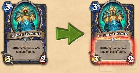 海象人图腾师变为“随机召唤一个基础图腾。”:喜大普奔。我作为一个不打萨满的玩家已经在最近打的若干局天梯被对手海象人出图腾魔像教育过无数次了,每次对手3费6/6,4费5/5嘲讽的时候我就想关掉炉石以克制我想砸电脑的冲动。虽然这个削弱稍稍有些凶猛,但确实很难找到更合适的削弱方式了。不过削弱了异能能不能在身材上给海象人一些补偿呢,海象人能不能真要看图腾萨的表现了。