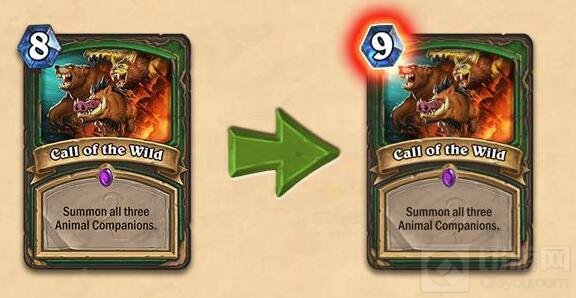 兽群呼唤从8费变成9费:说真的这张牌当初为什么会设计成8费我实在是不能理解,明明原来是一个典型的超模法术,为什么三位一体之后还要继续超模一波?这么修改之后这张牌仍然可用,但至少猎人会少翻一次脸,所以也没有那么强了,正经可以接受。