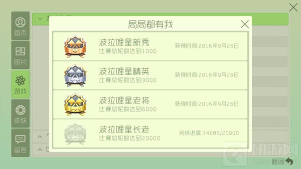 局局都有我3星,对应称号为“波拉哩星老将”,比赛总轮数达到6000,即可获得;