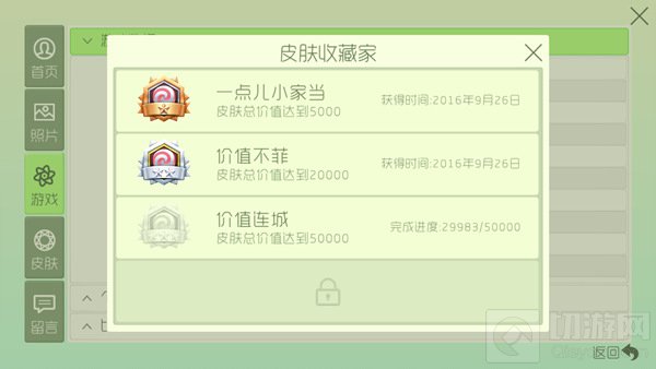 皮肤收藏家1星,对应称号为“一点儿小家当”,皮肤总价值达到1000,即可获得;