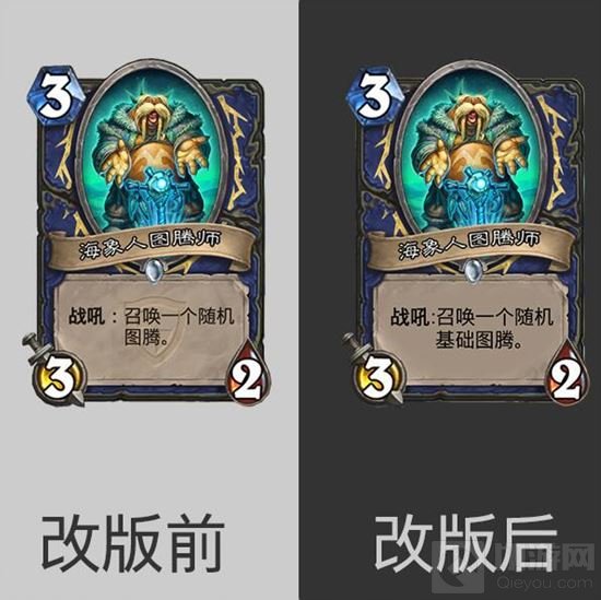 费用不变只能召唤基础图腾!这一下就从资本主义社会变成了原始社会!就算你幽魂之爪能够触发特效的概率大了,但失去的是萨满最大的灵魂特效图腾!暴雪官网的意思是这么修改是想让图腾萨崛起!海象人确实太强,特效图腾的威力太过于强大,所以这样改过之后我们只能手动火舌了,海象人的时代过去了,邪恶巫医会有更多人使用它么?