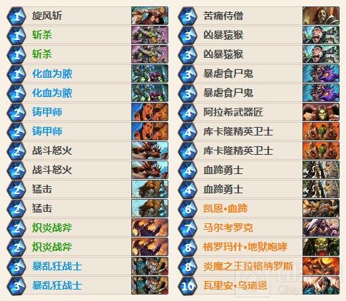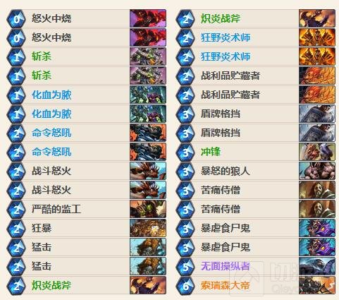 这套主要还是强度上不错才放出来,旋风斩能更好配合炎术士命令怒吼的COMBO。同样这一波返场以及过牌尤其重要,最后防止特别脸黑带上一个傻龙当保险使用。