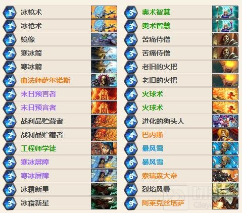 我冰法玩的比较少,但这套强度是很不错的,睿神用这套打到了传说第7。不过冰法对节奏的要求很高,有兴趣的玩家可以尝试一下。