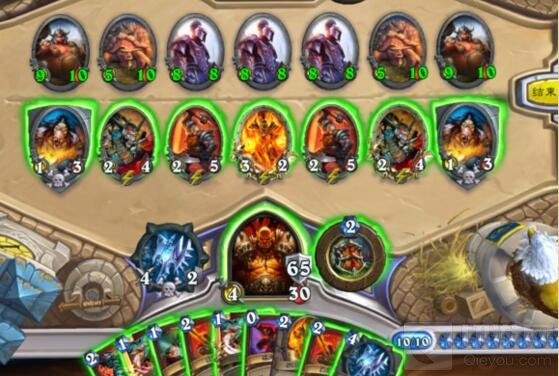 先将一个食尸鬼撞掉,上狂野炎术士,再用命令怒吼,四个旋风斩,对掷斧者使用怒火,共2+2+1+1+2+2=10费