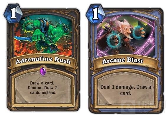 左边这张,就算只是1费抽1对于盗贼而言也完全可以用。既可以过牌,也可以不亏手牌的情况下触发连击。和加基森配合也很不错。但它除此之外还能做得更多。如果连击的话他就是一个1费的奥术智慧。但要打出1费牌的连击对盗贼而言也太容易了。那时候这张卡就太强,如今也依然如此。最终他们用毒刃代替了这张卡。但一开始的毒刃只需要1费。所以当时的毒刃依然是盗贼必带的牌。而右边这张老奥冲其实就是法师版本的老毒刃。虽然目前的新奥冲也是个挺不错的牌,但想象一下法师带的是老版奥冲。和巫师学徒配合就是免费毒刃。有法强就是打2+过牌。也可以配合火妖。也可以配合安东尼。更别说和冰法配合了。可以用来补刀,可以配合火冲解2血怪。这些牌给人的感觉就是早期阶段暴雪对于过牌的强大完全没有概念。有些幸存下来的其他过牌其实依然强大,只不过很多都是有前提条件的,比如战斗怒火和神恩术。