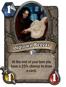 但话说回来,左边这张卡本身有点太强了。就算对手只有4张手牌,也可以2费回8血。另一方面,一般回血牌都是打快攻用的,但是这张卡却是在控制卡组内战的时候却更厉害,有点违背逻辑。而配合奥金尼又太强。经常可以2费打16,而且是可以打脸的直伤。总之,这张卡想法很有趣,但是很难平衡。最终这张卡被神圣之火所替换。然后,右边这张卡又太弱了。因为它只能打脸。平均而言就和心灵震爆差不多。可能在疲劳和爆牌卡组中会有点用。但既然已经有了强效治疗术,就没人再会用这张卡了。最终它被修改成了光耀之子,但是后者也并不是什么好卡。