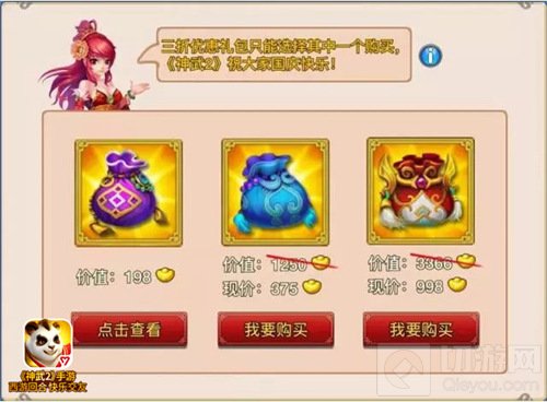 打开《神武2》点击右上角的“奖励”按钮,就能领取和购买国庆礼包,三折优惠!不仅有小伙伴们期待已久的通灵符,更有给力的高级通灵丹哦。