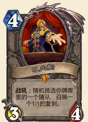 大地环先知加血续命,铜须可以配合很多战吼并且在必要时下场吸引仇恨,巴内斯的卡位本来是一个麦田傀儡,在笔者的对局中感觉巴内斯的作用明显大于一个麦田 ,因为可以拉出功能性牌并且可以配合回手等拿到急需的牌,身材并不亏,哈里森或者小软作为环境牌我认为是必须带的 ,碧蓝幼龙过牌法强很好用。其实大帝我感觉可以替换双子大帝,因为作者更喜欢减费打combo所以并没有选择嘲讽,有的朋友可能会有这样的疑问“你的克苏恩随从那么少,带双子大帝会不会没有效果?”其实在对局中很容易就能在7费前Buff克苏恩到10,这个可以根据个人喜好进行替换。