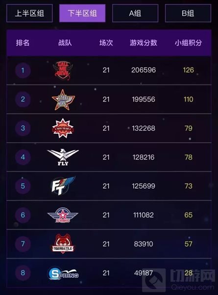 经过10月9日的9场循环赛,目前下半区战队的总积分为: