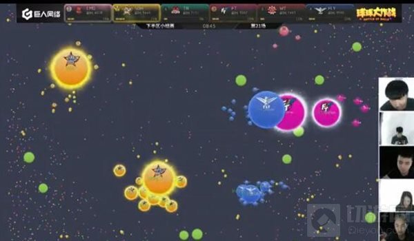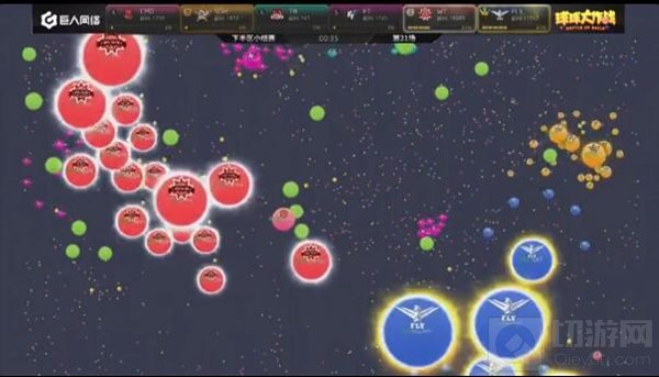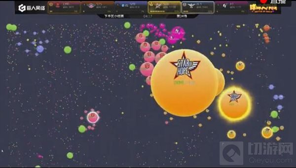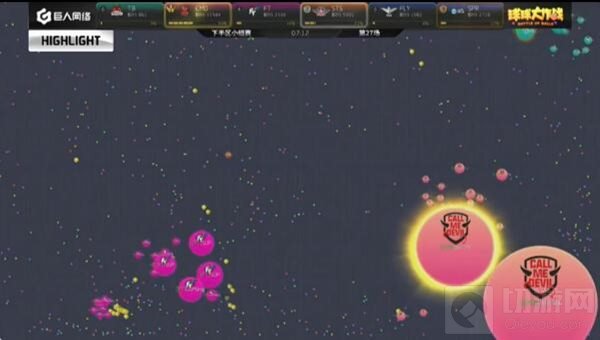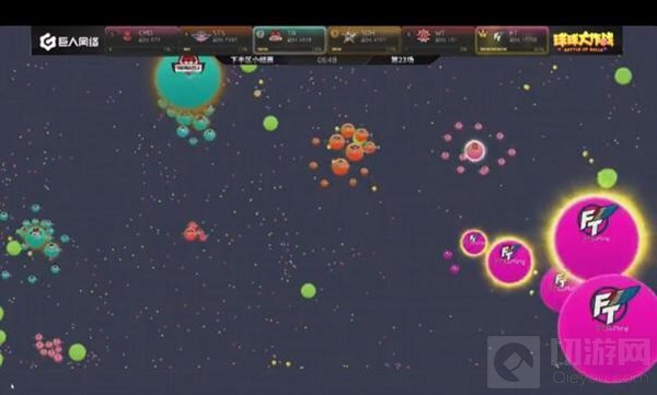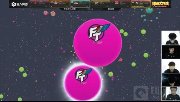 刚开局,STS慢慢发育暂时成为本局的第一名。随后CMD和WT压住,FT从灵便赶来,CMD一个补球吃掉了WT,随后CMD吃掉了TB的一部分小球。