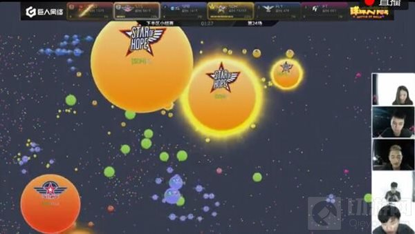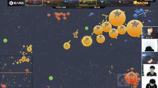 刚开局,SOH就开始吃掉了SPR的一部分小球暂时位居本场的第一名。随后,SOH运用自己的分身吃掉了STS.CMD吃掉了FT之后拿到了一些大球,随后CMD想用自己的队友去合球,不了被SOH抓到了一个空隙葬送了自己的球。